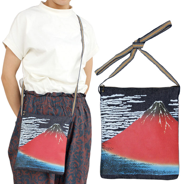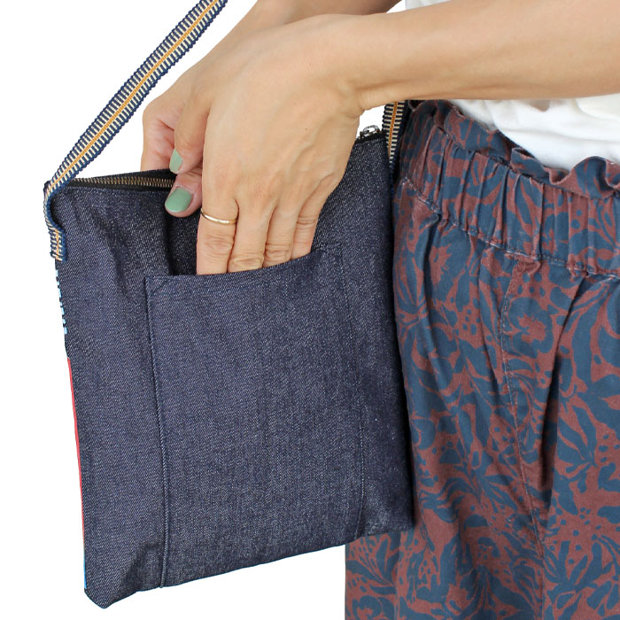 カラープリント真田紐デニムショルダーポーチ